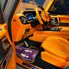 Questa vettura è un esempio di bellezza e potenza combinate. Si tratta di un SUV Mercedes-Benz Classe G di Brabus, un'auto che fonde perfettamente lusso e alte prestazioni. Con una struttura in metallo robusta e durevole, è protetta da urti e graffi. Il suo colore viola brillante attira l'attenzione e ne mette in risalto la personalità audace e distintiva. Le grandi ruote in gomma nera sono adatte a qualsiasi tipo di strada, sia sconnessa che liscia. Dispone inoltre di un tetto dotato di portapacchi, utilizzabile per trasportare oggetti pesanti o di grandi dimensioni. L'emblema B sulla griglia del radiatore indica che non si tratta di un'auto normale, ma di un veicolo modificato da Brabus, una rinomata azienda nota per la trasformazione di auto normali in veicoli ad alte prestazioni. Questa vettura vanta un motore potente e veloce, capace di raggiungere alte velocità senza sforzo. All'interno ci sono sedili in pelle lussuosi e confortevoli che offrono comfort e calore ai passeggeri. Inoltre, è presente uno schermo ampio e avanzato che visualizza informazioni e intrattenimento sia per il conducente che per i passeggeri. Questa vettura è un sogno per chi ama la velocità e il lusso, meritando ammirazione e lode. Rappresenta l’era moderna e il futuro del design automobilistico.